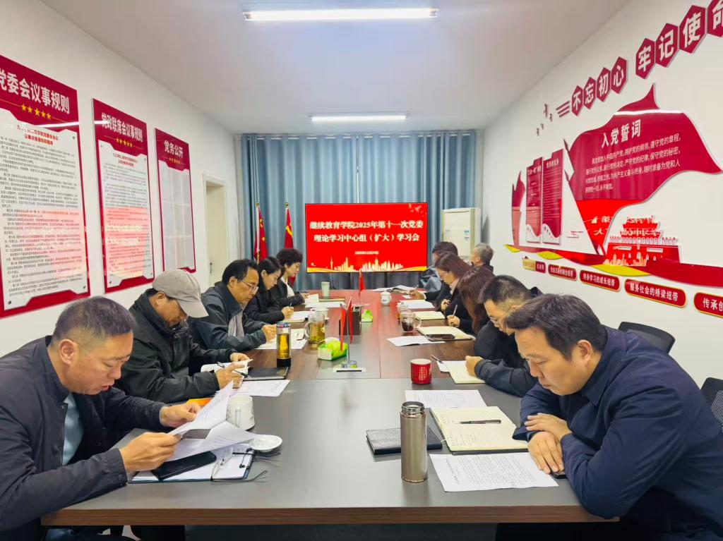 11月24日上午,继续教育学院党委在201会议室组织召开党委理论学习中心组扩大学习会,聚焦党的二十届四中全会精神开展专题学习与研讨交流。党委书记任丹阳主持会议,学院党委班子成员和各科室负责人参加学习会。